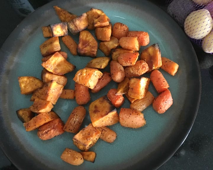 Roasted vegetables + olive or coconut oil:. Brightly colored vegetables like squash, carrots and sweet potatoes are loaded with phytonutrients and are delicious when roasted. Roast them in a healthy fat like olive oil or coconut oil and you boost their nutrient value. Research shows that eating a healthy fat with your orange and yellow veggies has been shown to enhance the absorption of beta – carotene (vitamin A), an anti-oxidant that plays a critical role in eye and skin health.