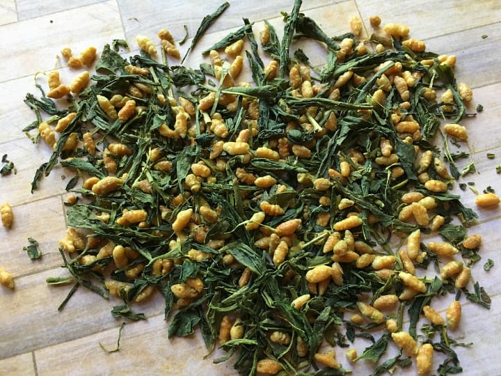 She orders a cocktail but you decide a nice cup of green tea would make you happier. In a very non-traditional pot, the server brings you a tea that smells delicious but unfamiliar. She says it’s genmaicha…and you’re stumped. You’re about to get your introduction to Japanese green tea.