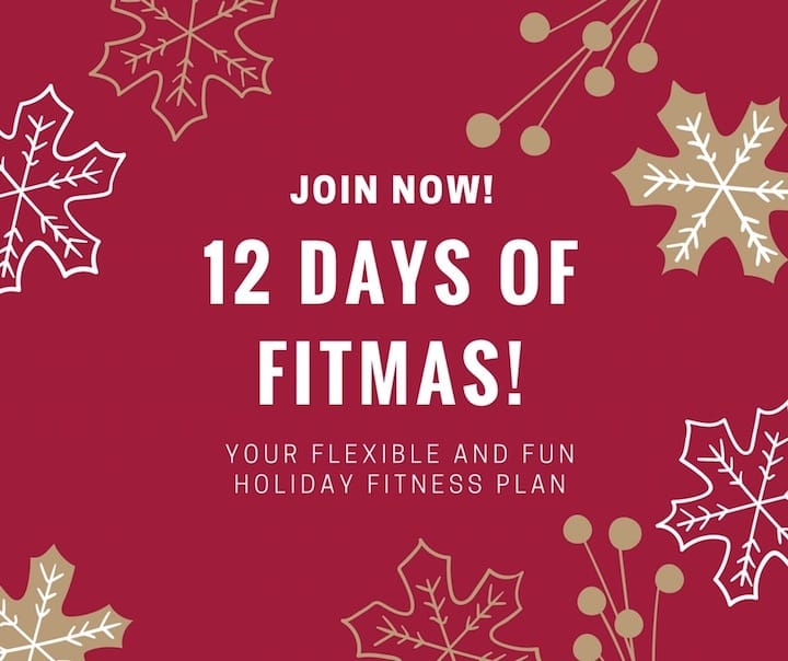 The 12 Days of Fitmas is my FREE holiday fitness program to help you be present and enjoy your holiday season while staying true to your fit life goals. When you sign up, you’ll get 12 emails for 12 days that include: