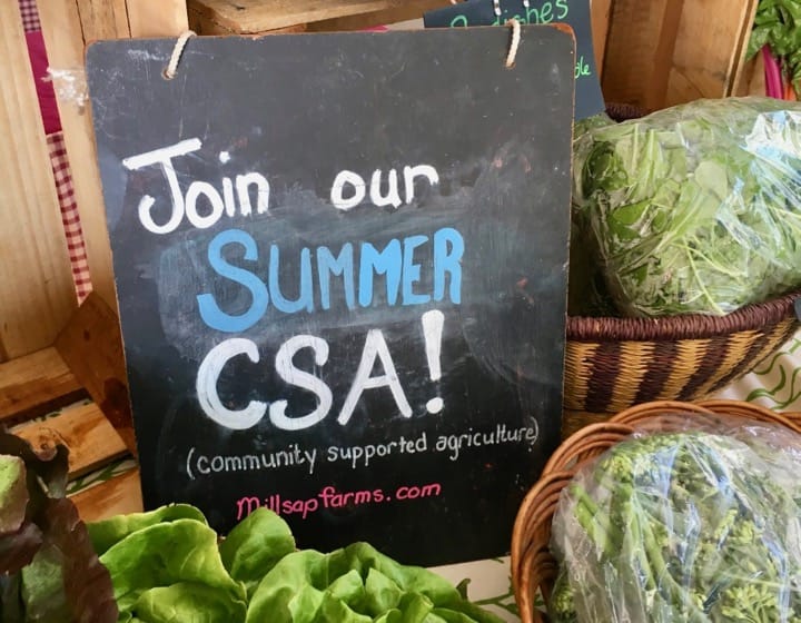 Community Supported Agriculture, or CSA, is a method of getting farm fresh produce that has been around for a while. The basic premise is for a set price (and sometimes work on the farm) you pre-buy a share of the harvest from the farm. You pick up a box every week at the farm or get a delivery with a selection of the best produce of the week. Often you can choose a full share or a half share for a smaller family.