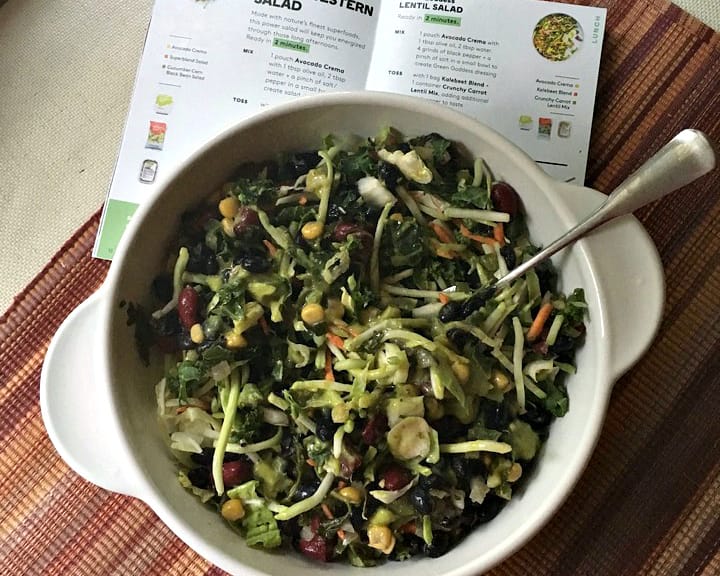 The down side was they aren’t very flavorful. Of course, for the convenience you could easily add some salsa or other extra seasonings if your taste buds require it. At $69 a week for the Starter Set I would also so this is the best value for the money. Many of the sauces have extra servings so you can use them for other easy meals. I also ended up with extra greens that I used for another salad later in the week. If you want more for your money and don’t mind 10 minutes or so in the kitchen here’s a great choice for you.